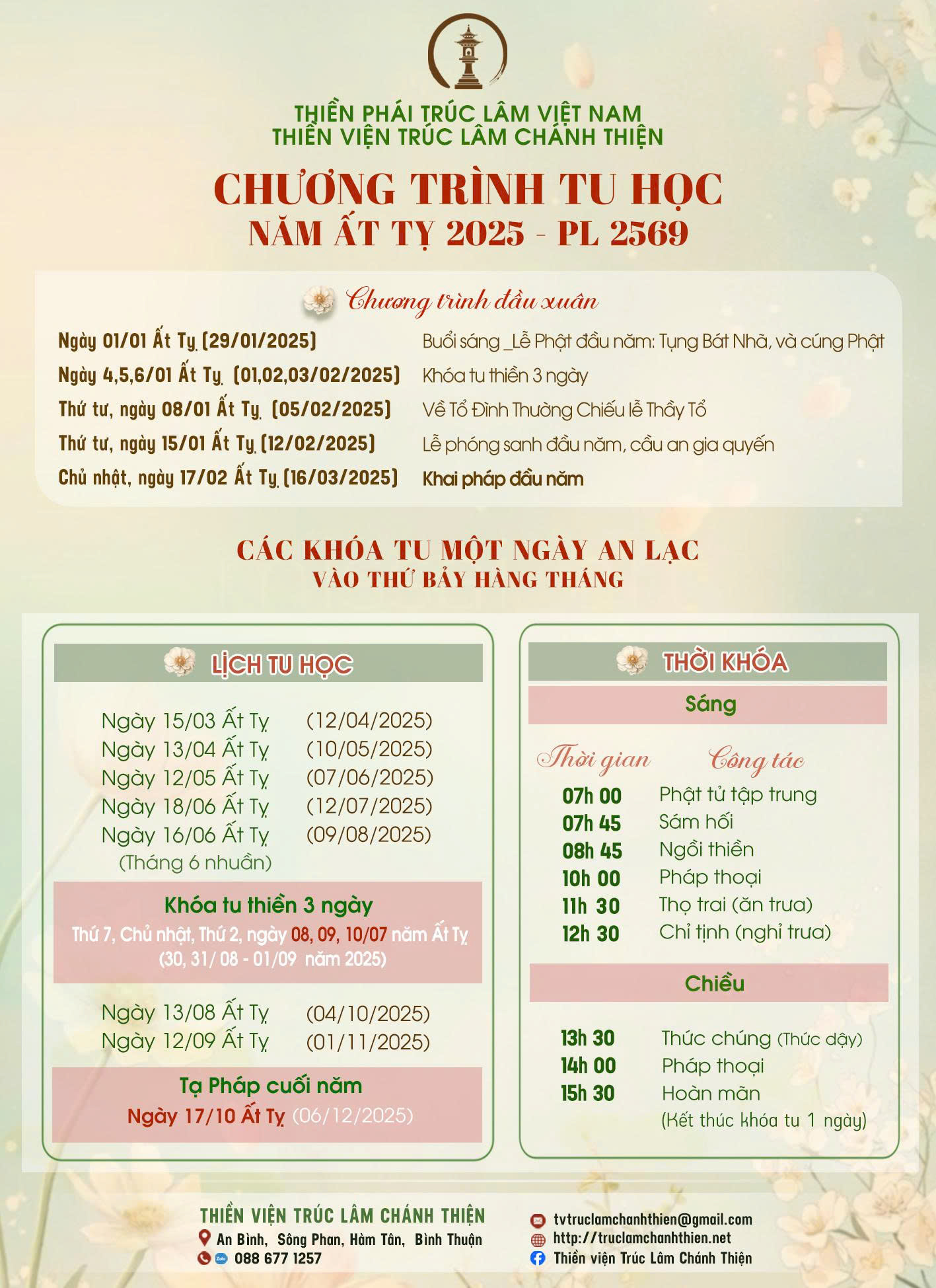 Chương Trình Tu Học 2025 – Tại TVTL Chánh Thiện