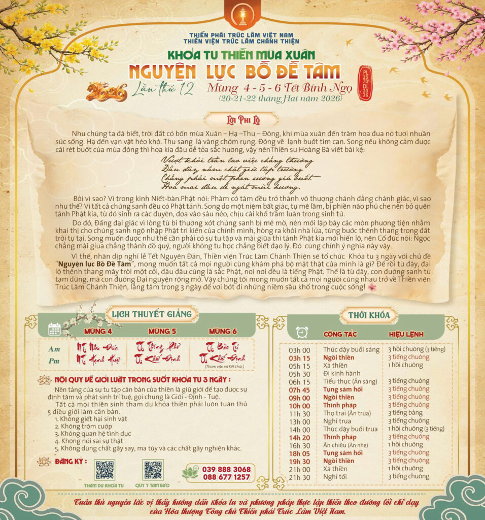 THÔNG BÁO: KHÓA TU THIỀN 3 NGÀY TẾT 2026